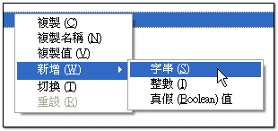 【Step2】在空白處按右鍵,選擇「新增(W)」→「字串(S)」