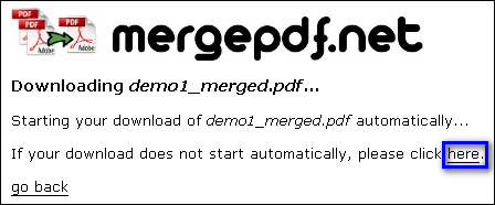 合併完成後,會自動跳出下載視窗,若沒有跳出的話,請自行點選下圖右下角的「here」下載合併檔。