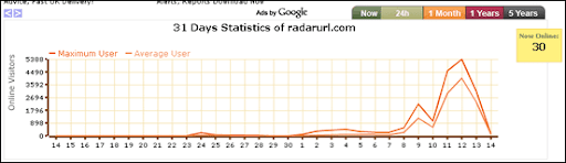 據我的觀察發現,很多人會在網誌放置線上訪客人數的小外掛,而且大多數會使用whos.amung.us,它的好處就是簡單、及提供一些簡易的數據,現在,除了whos.amung.us外,還有一個新選擇「RadarURL」;RadarURL同樣不需要註冊,一樣只要copy一段小程式碼就可以立即使用,也提供了即時線上人數的歷史資料,並整合了Google Maps來顯示訪客來源。