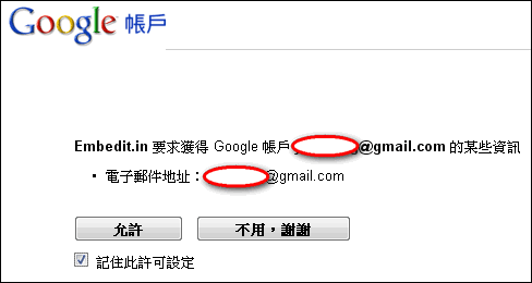 在我選擇了Google登入後,Google會顯示存取要求的提示,選擇「允許」即可