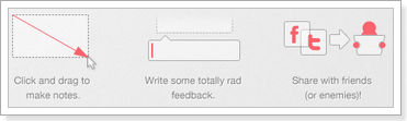 「Bounce」A fun and easy way to share ideas on website. 由這段話看來是指出Bounceapp.com是一個有趣且簡單的工具,可在網路上分享你的想法,試用過之後,的確是個蠻簡單的服務,各位可透過官網所提供的註解工具,直接在網頁上加上註解、評論,並將結果分享給朋友,其他人也可以繼續的編輯,繼續的分享下去。