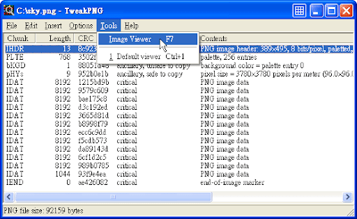 這個工具較適合相關領域的人來使用,所以不說明操作教學,只列出軟體介面供各位參考:(要教學的話我也不會,我不熟PNG格式的內容)
