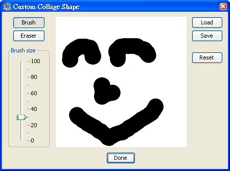 另外一個外形就是「Custom」,這個選項就神奇了,可以自己畫出想要的形狀,然後再Create出想要的效果,例如我隨手畫的笑臉:
