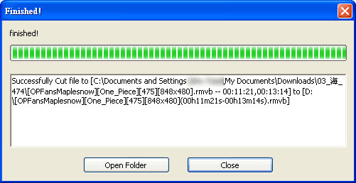 - Direct Stream Cut (No-re-encoding mode):直接分割,不需要重新編碼,所以速度會很快、不會失真,目前支援的格式有AVI、MPEG、VOB、MP4、3GP、RM、ASF/WMV/WMA、MKV、FLV、MP3