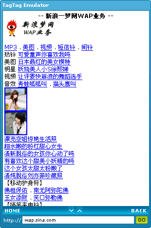 既然提到Opera,不得不提一下很多手機上都有它蹤影的「Opera Mini」,你可以利用官網所提供的「Opera Mini Simulator」線上模擬器,來感受Opera Mini在手機上操作的樣子,用這個模擬器來看WAP網頁也是極為簡單的事,畫面如下: