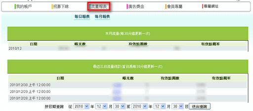 你可以在流量報表中看到全部的流量統計,而且你可以在「我的帳戶」中看到「點閱IP記錄」功能,這樣你就可以看出點擊你廣告的訪客是來自何處