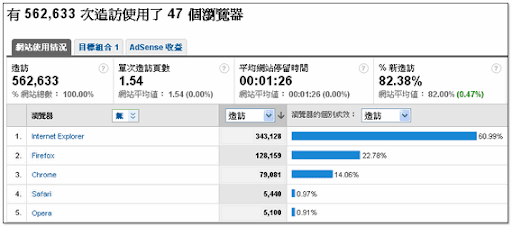 訪客瀏覽器:依然是IE居多,有六成之多!